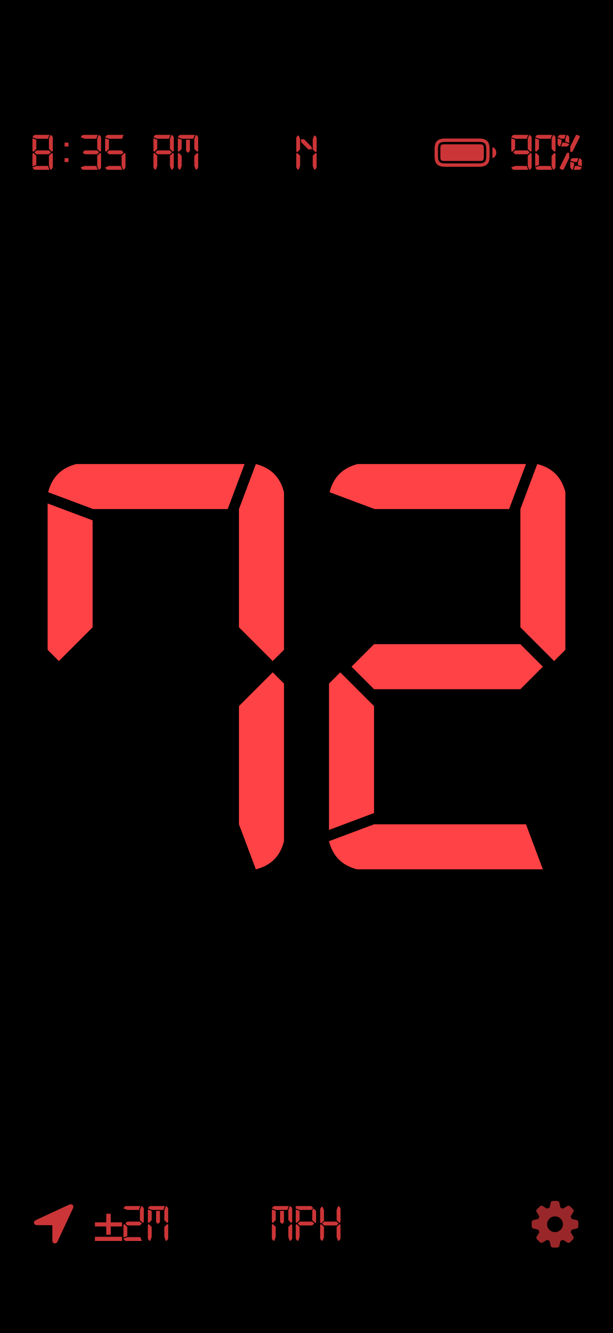 - MPH or KPH display below speed
